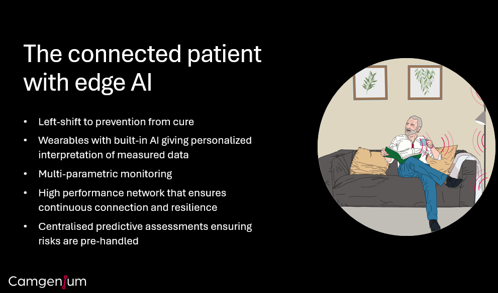 These devices use multi-parametric monitoring and combine multiple data points for a holistic view of health. A high-performance network ensures continuous connectivity and resilience, while centralised predictive assessments identify risks before they become emergencies. Edge AI brings intelligence directly to the device, benefiting patients and empowering providers.
